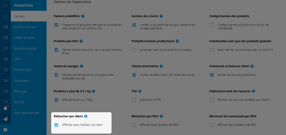 Commencez par activer les options "produits par RDV" et "Réduction par RDV".
