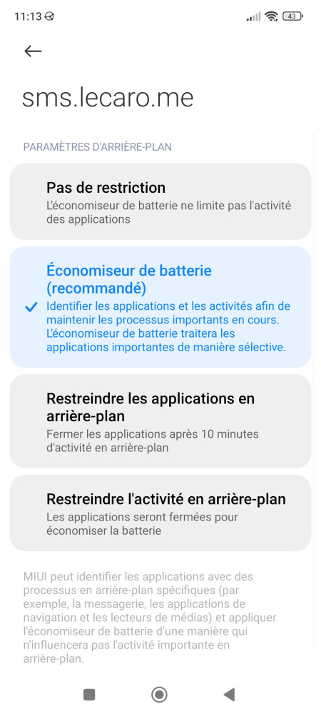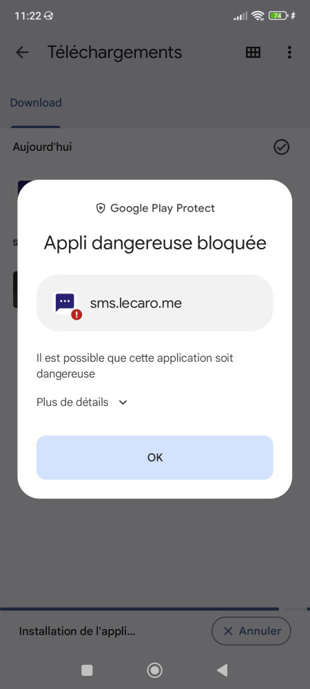 SMS d'un service web) n'est pas autorisé par le Play Store.