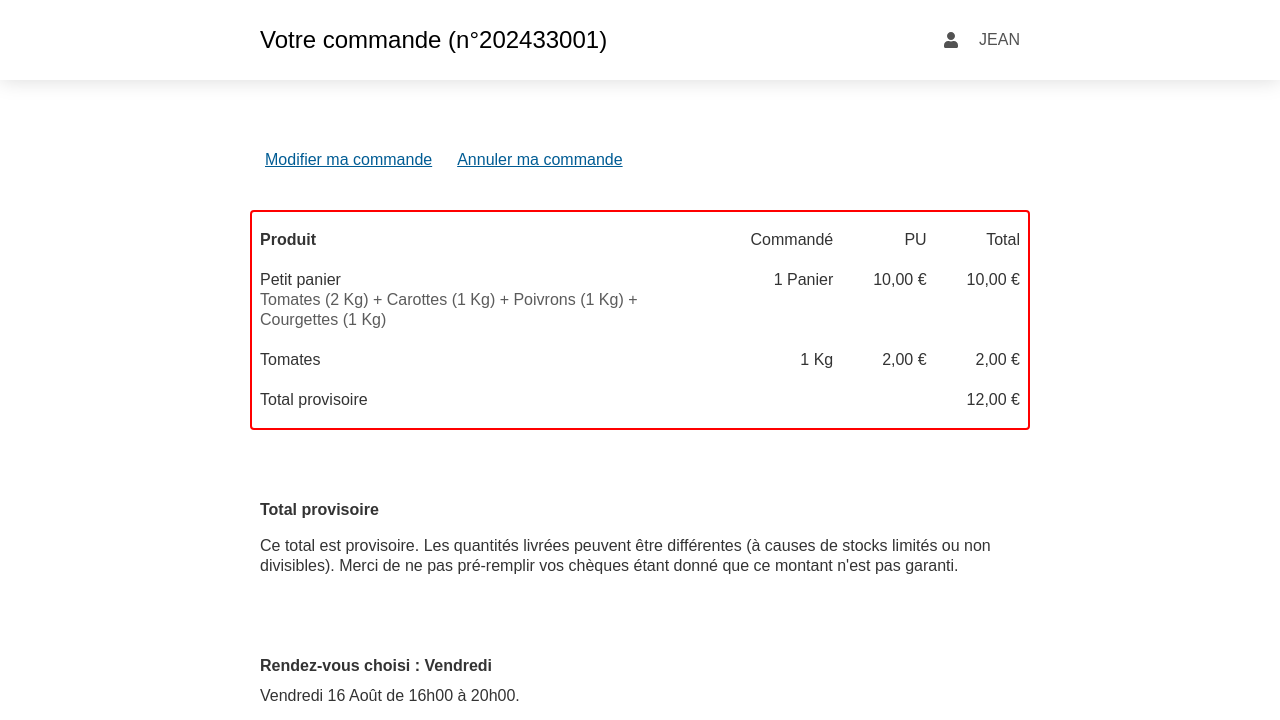 Si vous invitez vos clients par e-mail, et que ces clients ont un "rendez-vous favori", les paniers seront proposés directement dans l'e-mail d'invitation, pour leur faire gagner du temps.