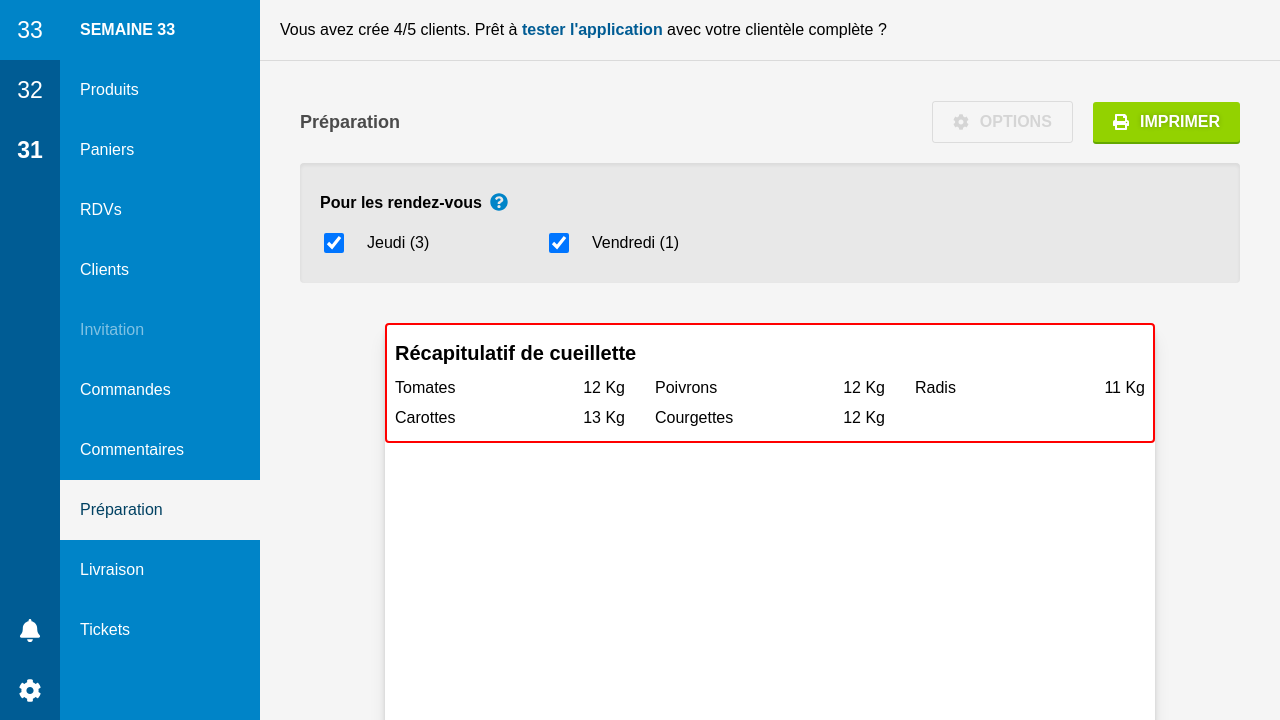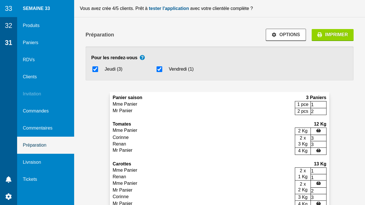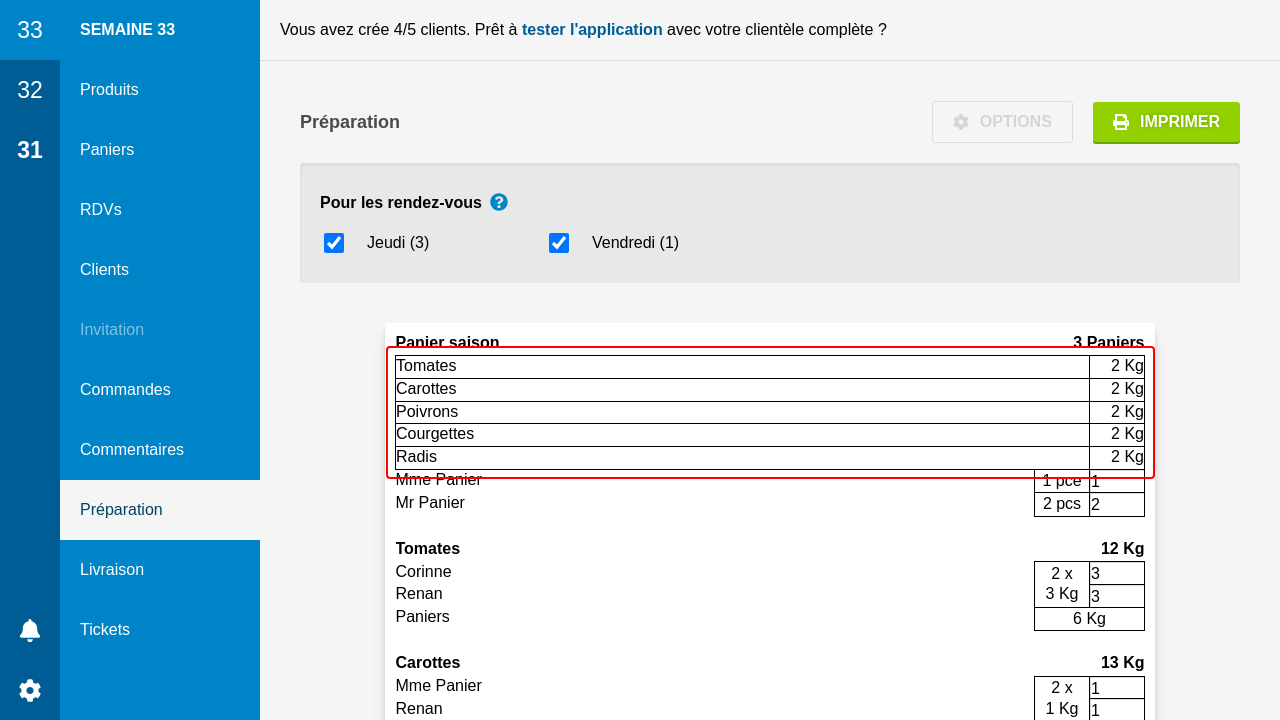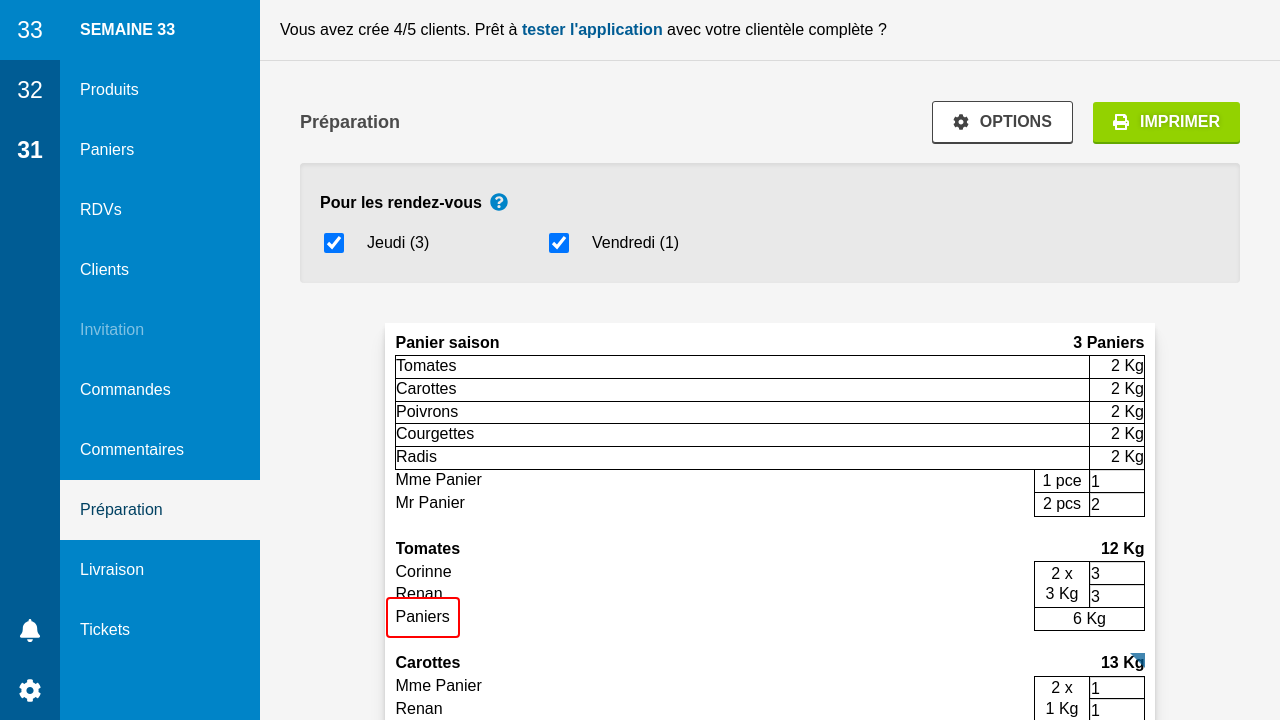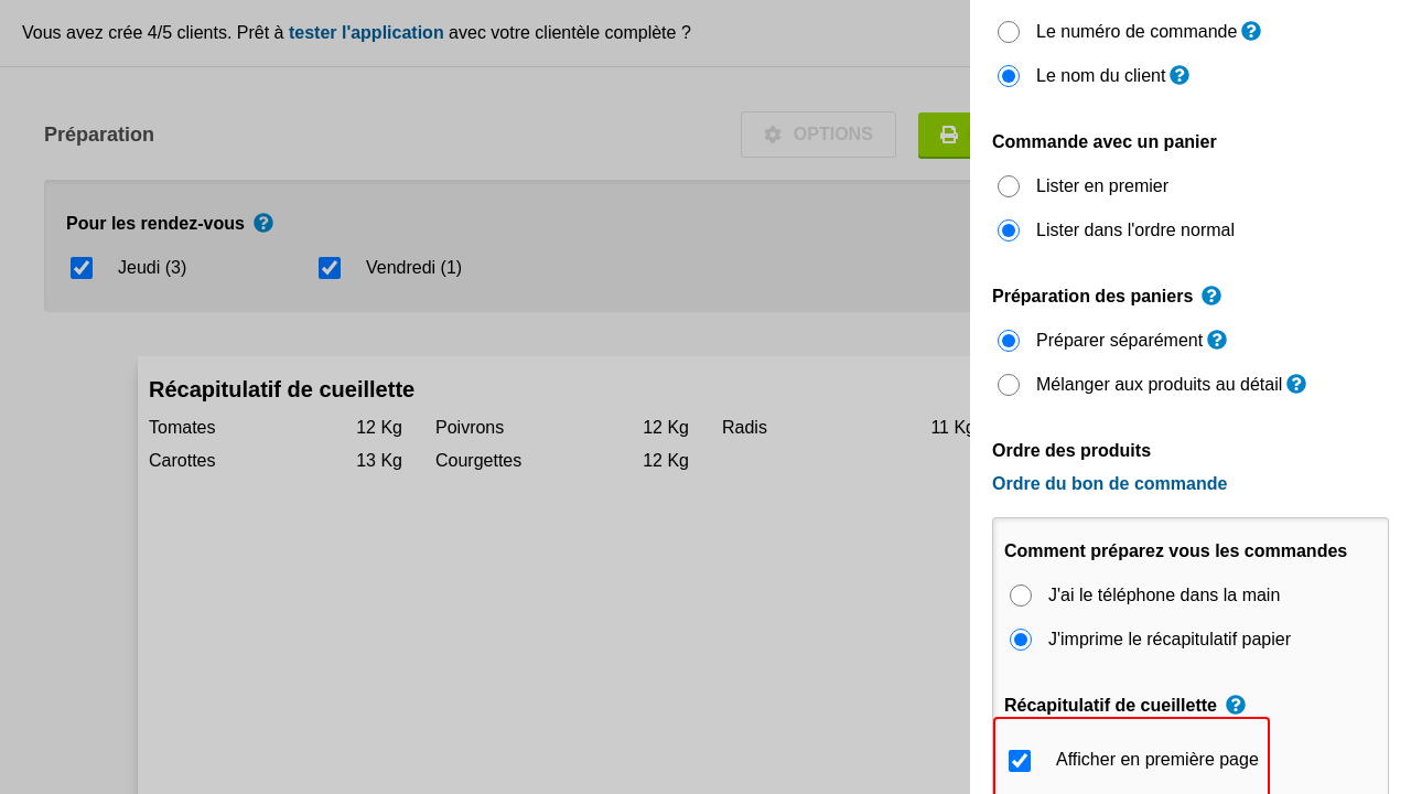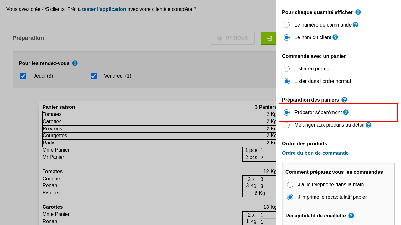 Si vous avez des commandes de panier et de détail pour un rendez-vous, il peut être intéressant de les préparer ensemble ou séparément. Dans la préparation, les différents ingrédients du panier sont listés en commun avec les commandes au détail.
