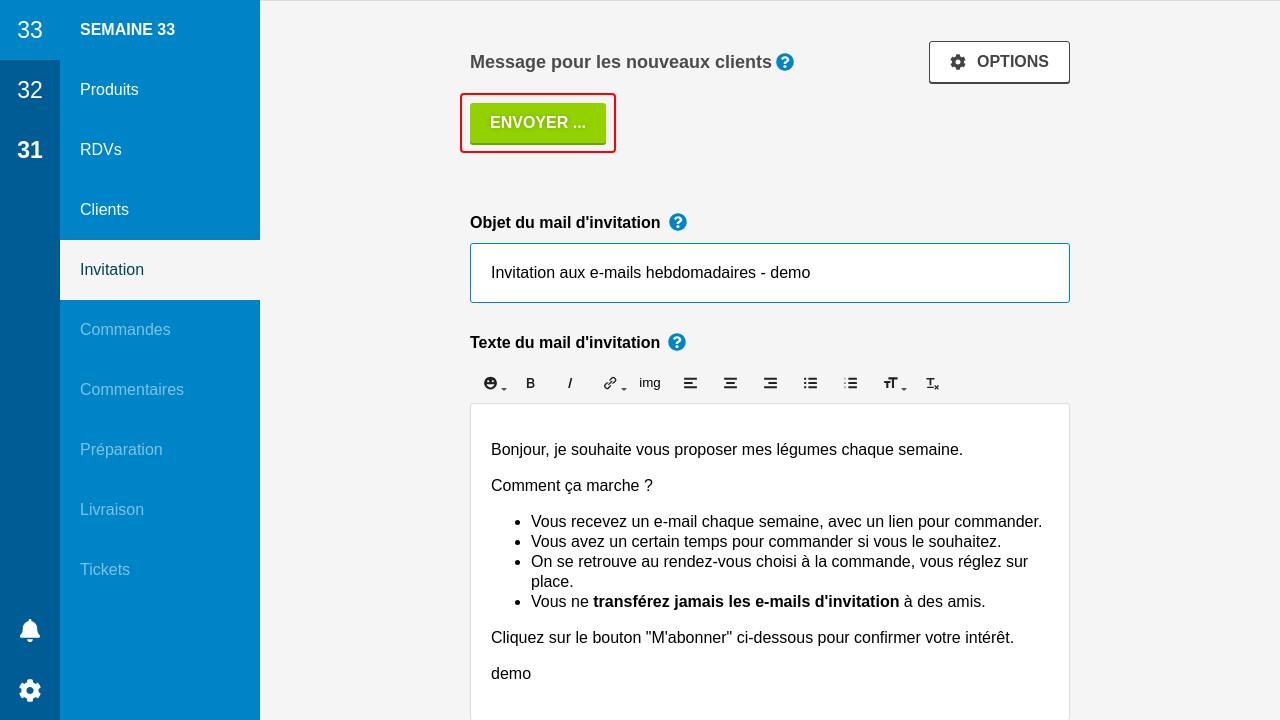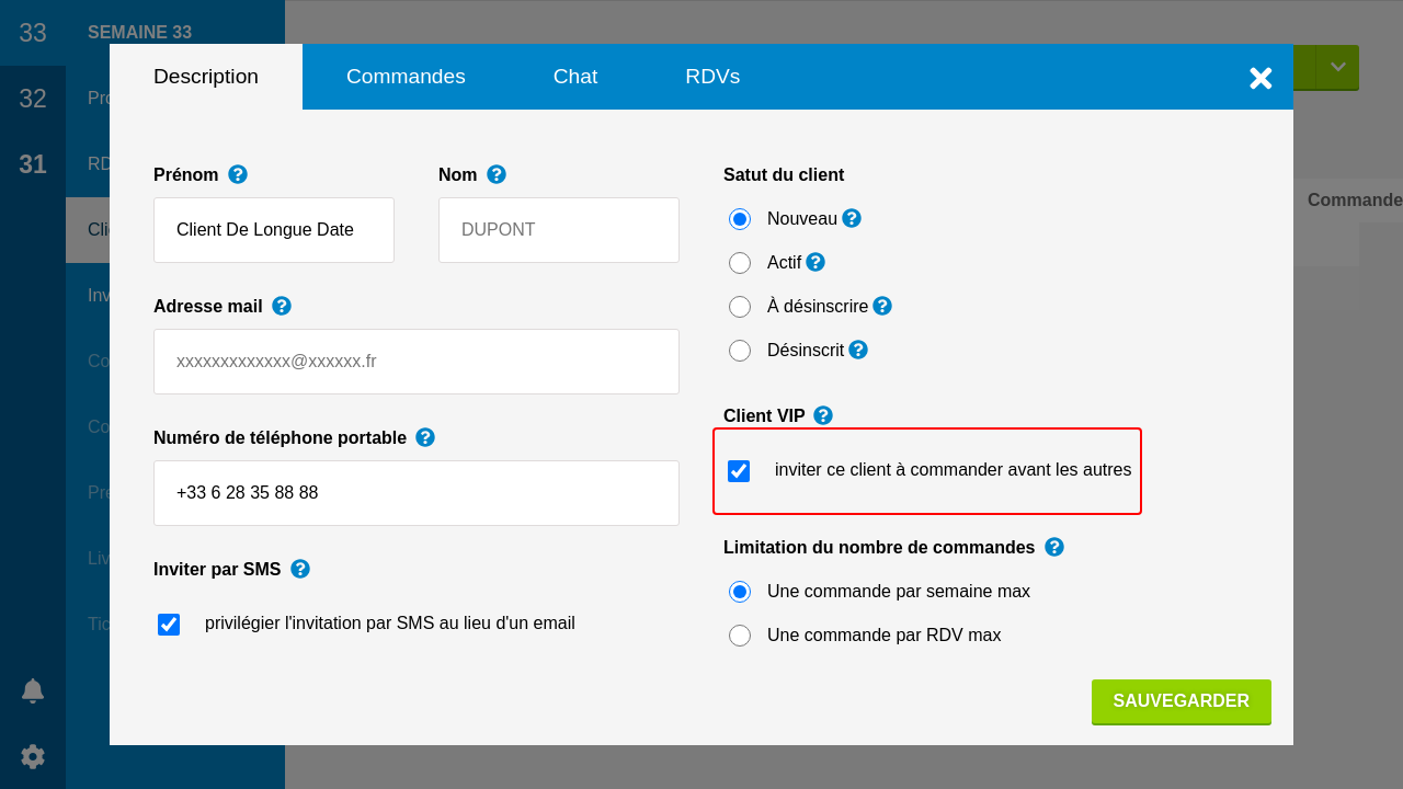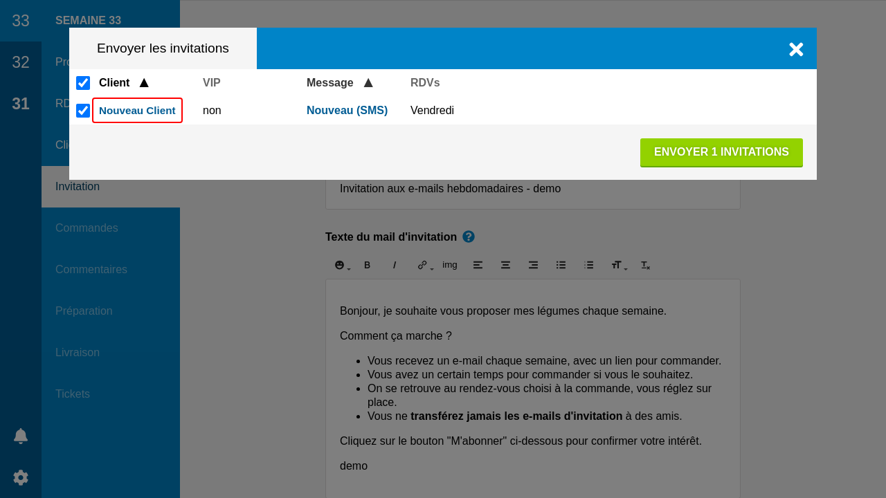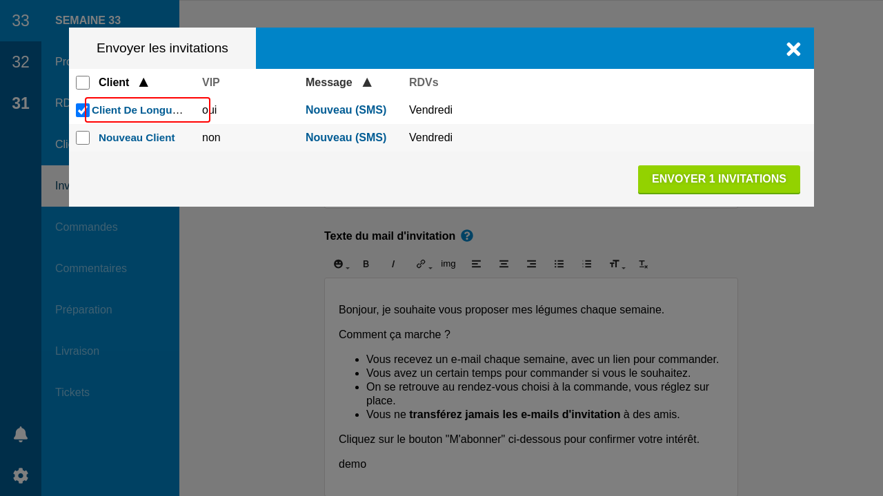 L'envoi des invitations se passera ensuite en deux temps. Les clients VIP seront invités en premier. Lors d'un second envoi, quand vous pensez que vos VIP ont eu assez de temps pour commander, vous pouvez inviter le reste de votre clientèle.