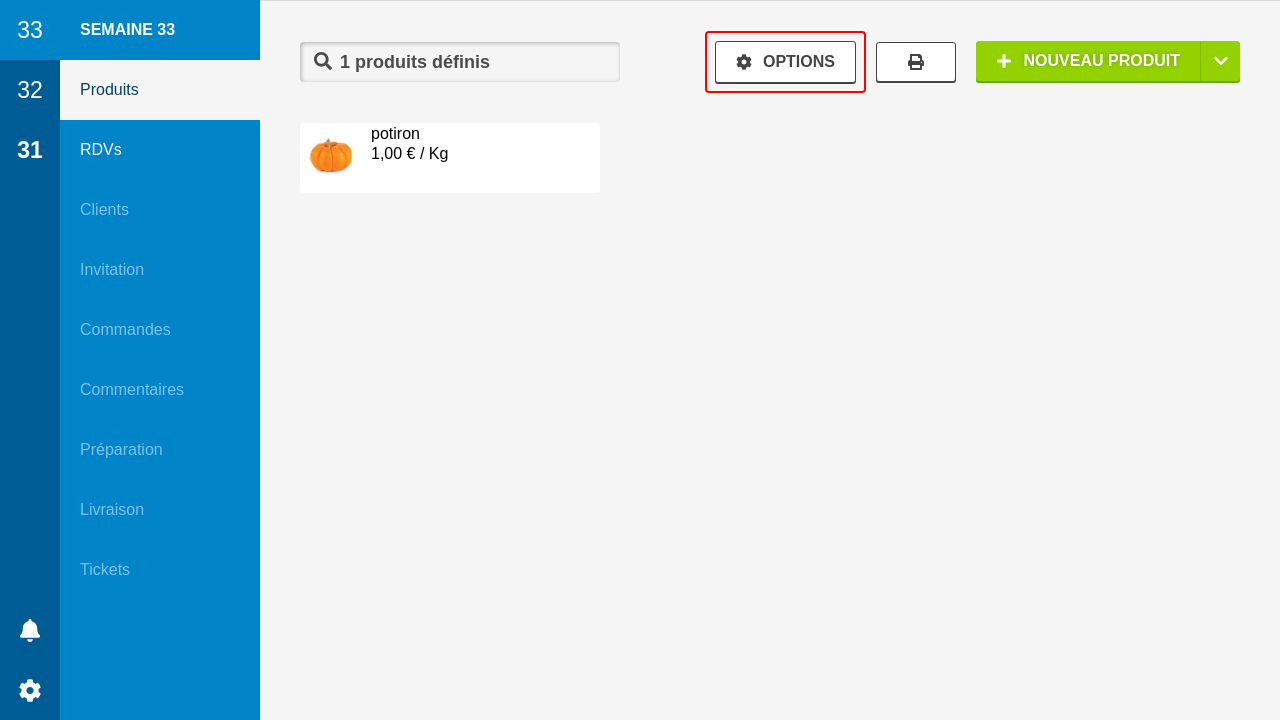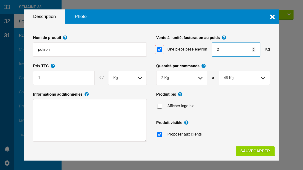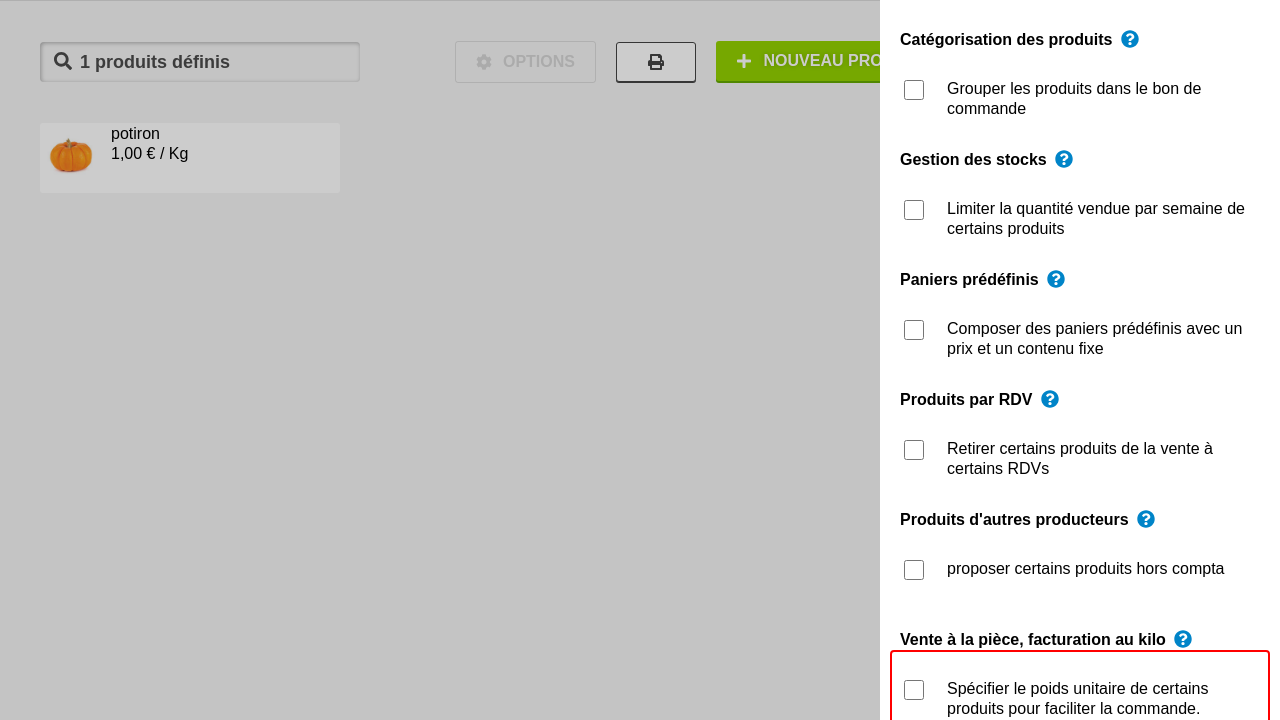 Typiquement utilisée pour les courges et autres légumes volumineux qui se gardent mieux entiers, l'option "vente de courges" vous permet de proposer certains légumes à la pièce, tout en facturant le poids réel au kilogramme.