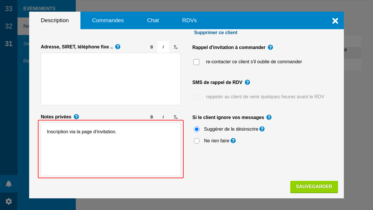 S'il y a une vente en cours et que des clients ont déjà été invités, le client nouvellement inscrit sera immédiatement invité à commander par e-mail ou par SMS. Dans le cas contraire, il sera juste ajouté au fichier client et invité la semaine suivante.