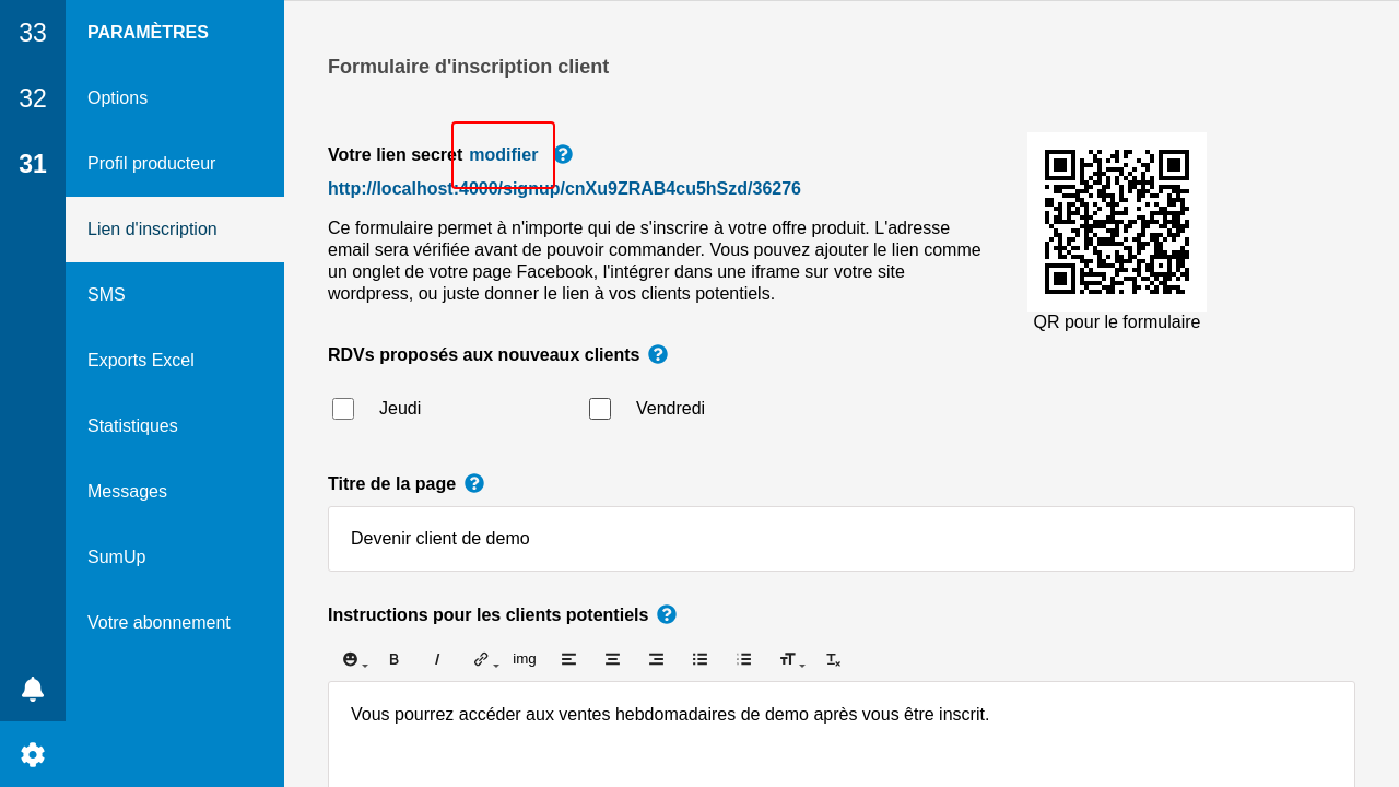 Vous pouvez cliquer sur le lien et vous inscrire pour voir à quoi ça ressemble. Les clients inscrits via le formulaire auront une note spéciale indiquant leur origine, et vous serez notifié.