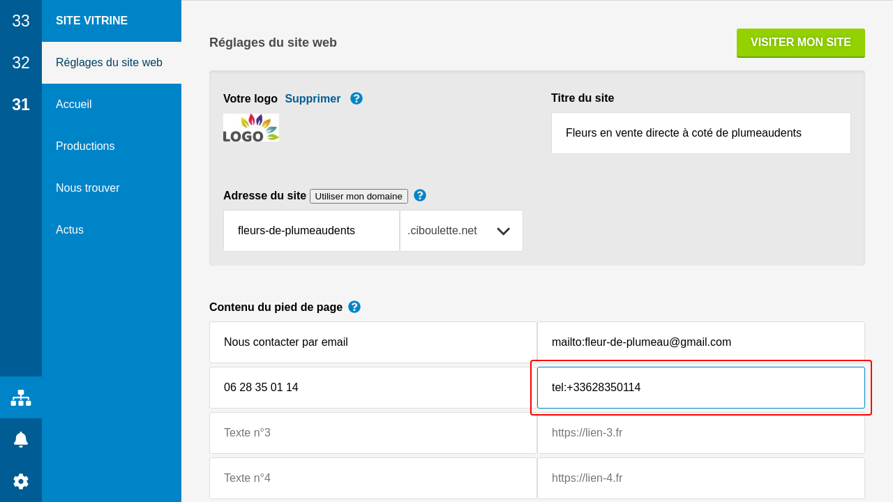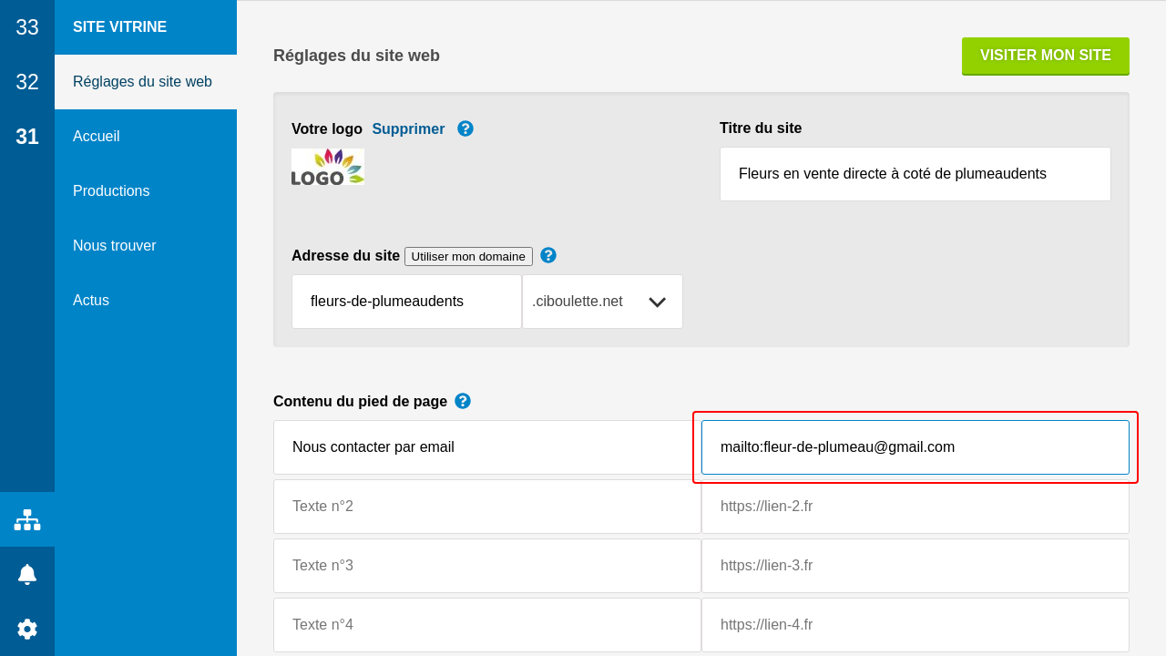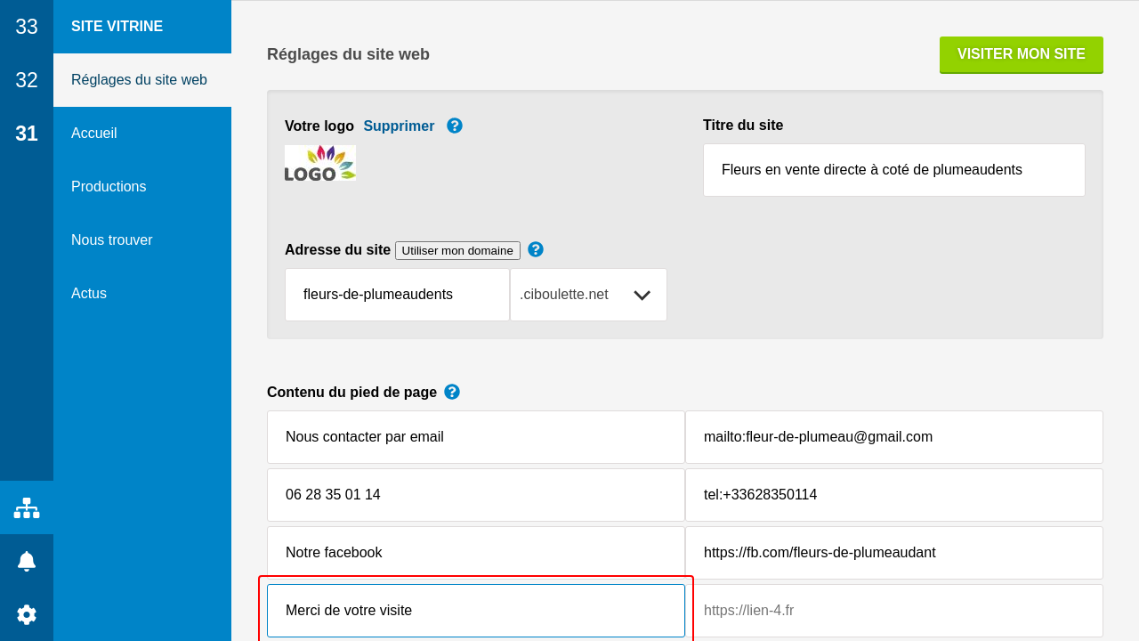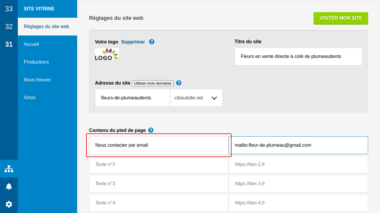 Enfin, le pied de page est complété avec quelques textes et liens, y compris un lien vers ciboulette.net (que vous pouvez retirer).