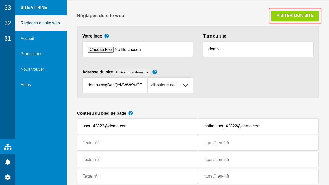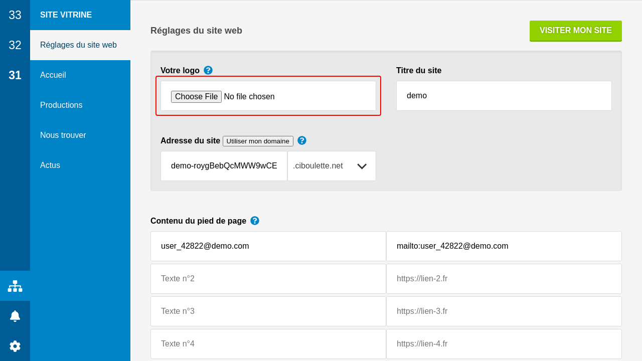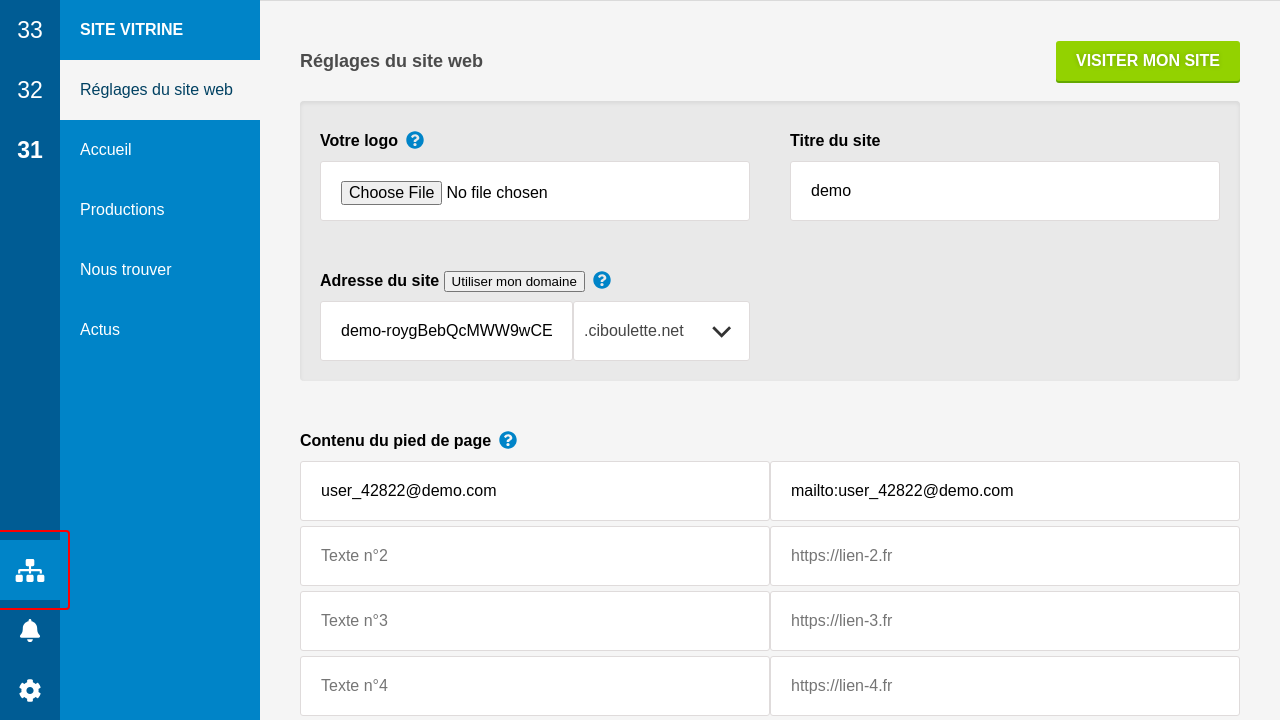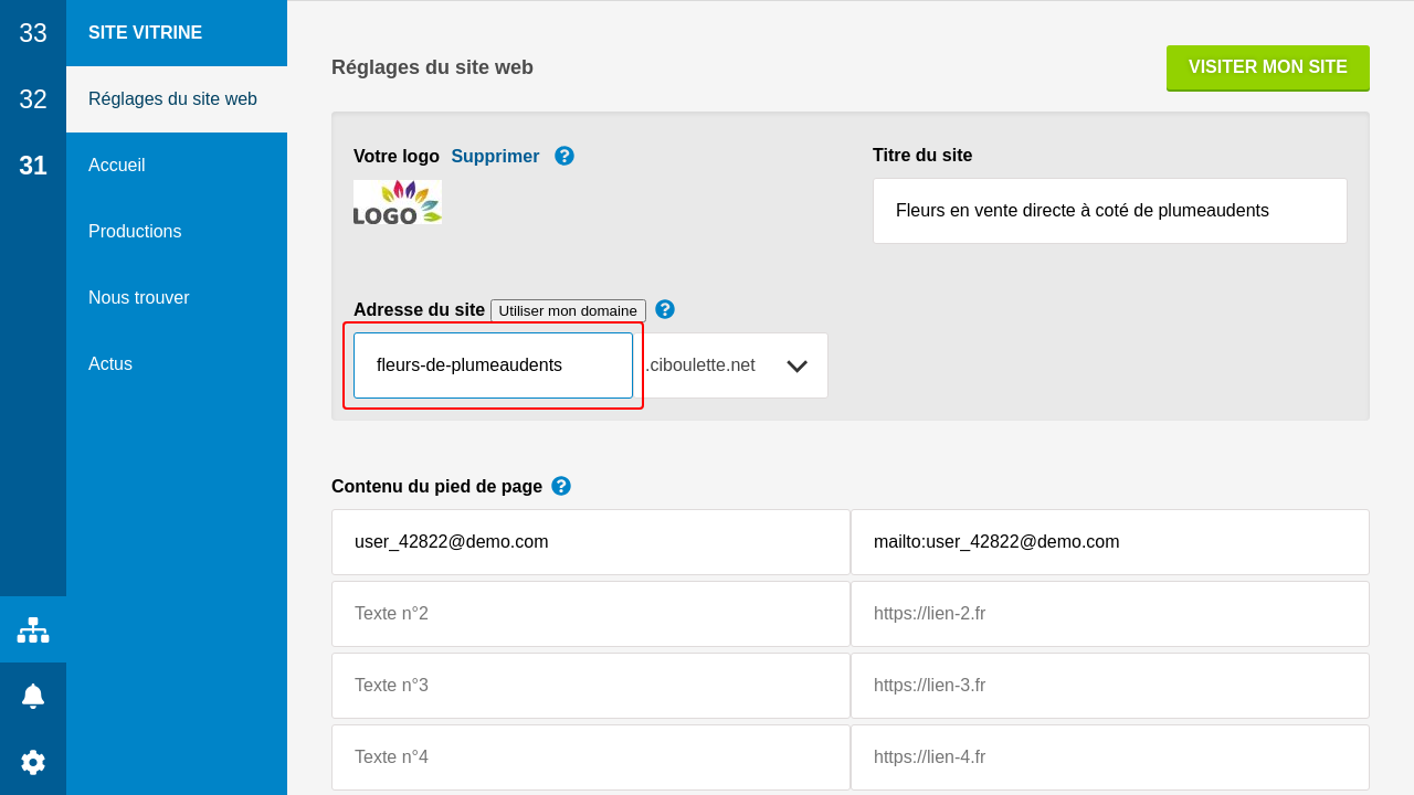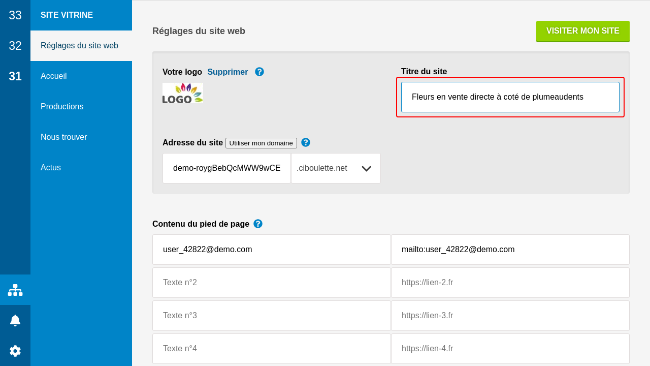 Enfin, le pied de page est complété avec quelques textes et liens, y compris un lien vers ciboulette.net (que vous pouvez retirer).