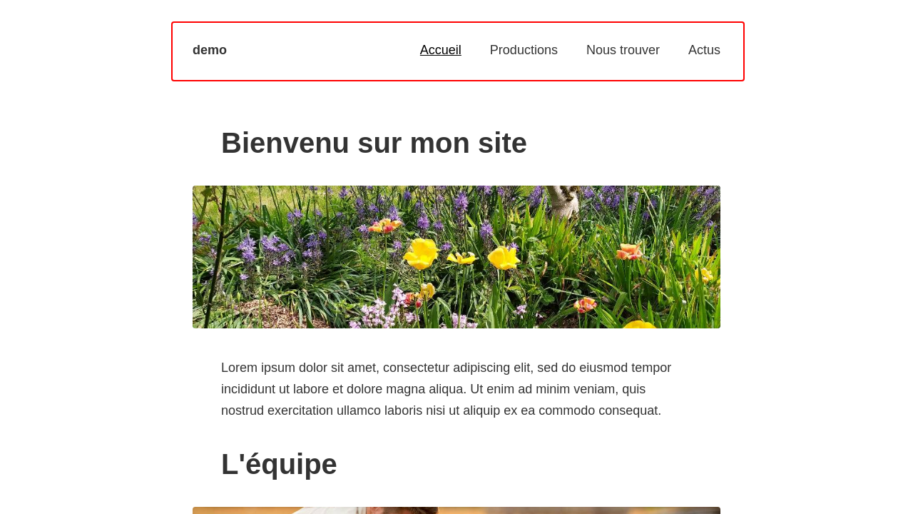 Il faut d'abord cocher "Utiliser l'éditeur de site web ciboulette" Le menu affichera ensuite une option pour vous occuper de votre site web. Commençons par visiter le site qui a été généré. Chaque page commence par le menu, avec votre titre/logo à gauche et les pages du site à droite. La première page de la liste est la page d'accueil.