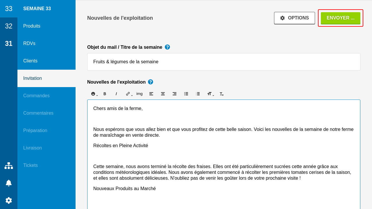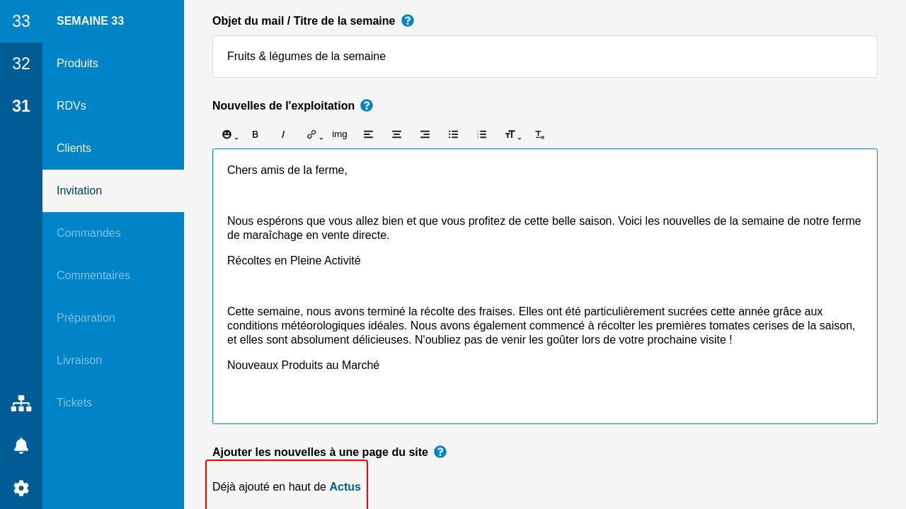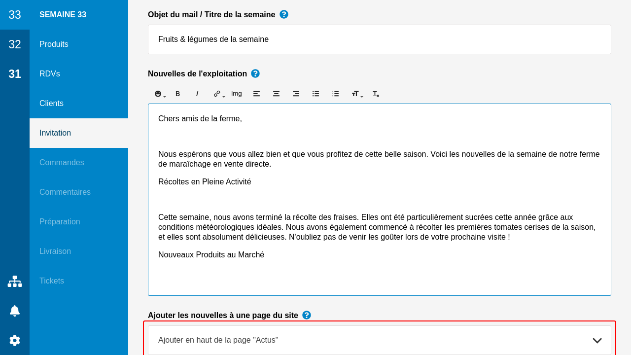 Les semaines suivantes, vous pouvez automatiquement ajouter ce que vous écrivez dans "Nouvelles de l'exploitation" sur cette page ou sur une autre page de votre choix.