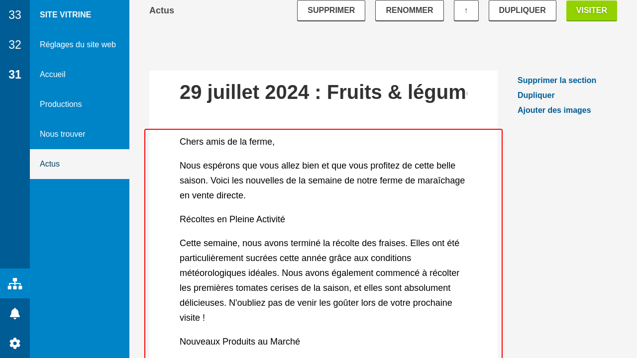 Lorsque vous activez la fonction de site web, les nouvelles des dernières semaines sont importées dans une page "actu".